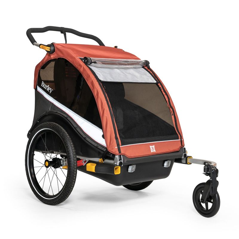 El robusto remolque para bicicletas y silla de paseo Cub X se adapta a los terrenos más difíciles y mantiene a los niños cómodos y seguros. Para 1 o 2 niños.